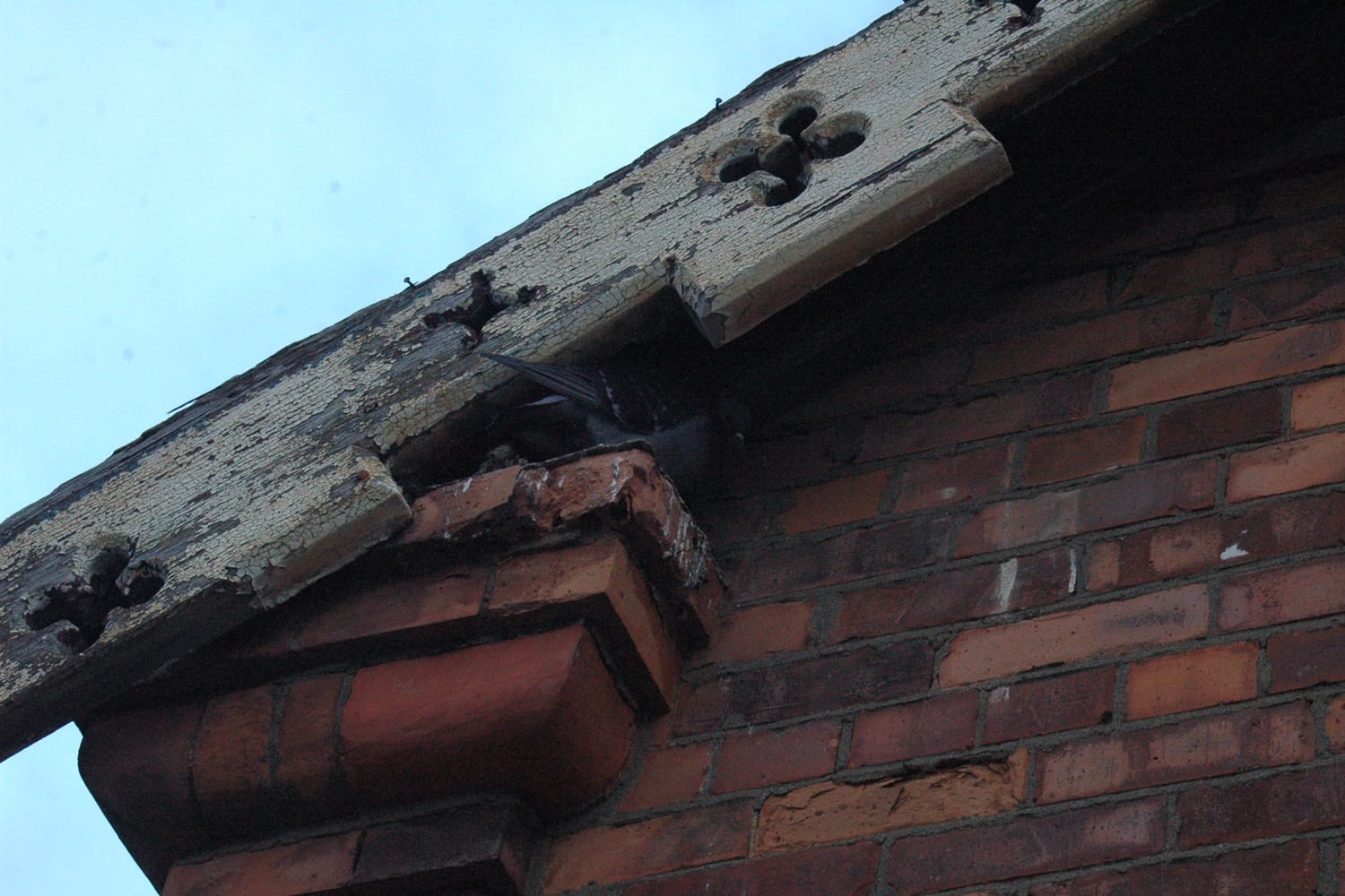On a Sunday evening, pigeons lurked around its roof. One nestled above the brick window, under a pointed white wooden gable, its paintwork peeling and cracked like a lizard’s skin.
