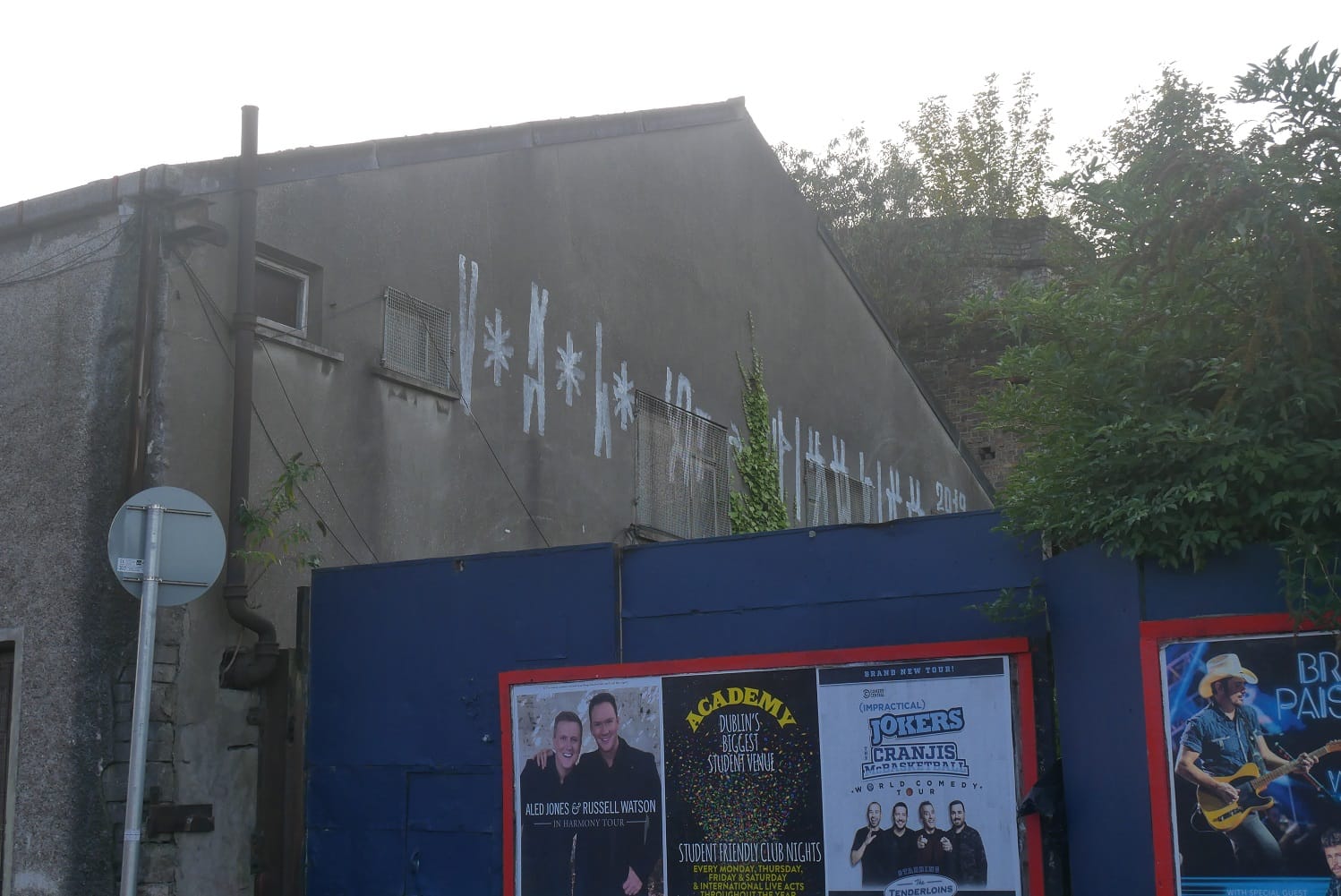 There’s some scrawled in black on a wall on Donore Avenue. There’s white symbols high up on a vacant building on the corner of Brabazon Place – visible, mostly, to those sitting on the top decks of buses travelling down Cork Street.