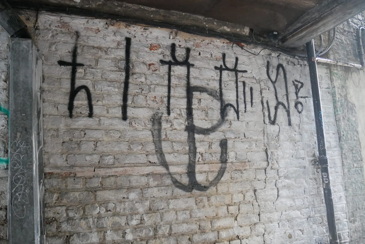 Turn into Molyneux Yard off Thomas Street next to The Lab pizzeria, and you’ll see some spray-painted symbols in black across a wall.